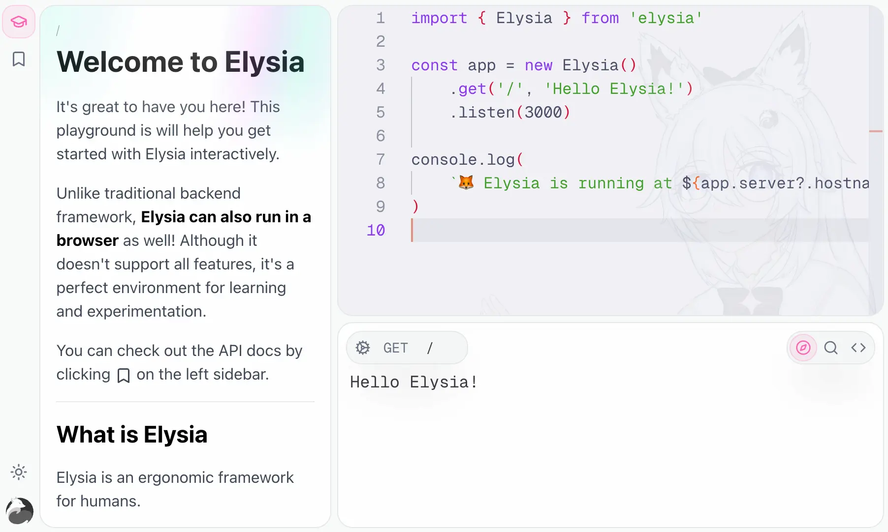 An interactive experience to learn Elysia with IDE, playground, and more.